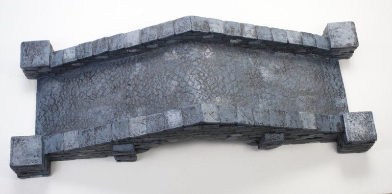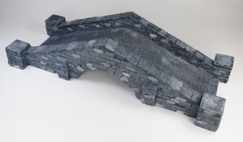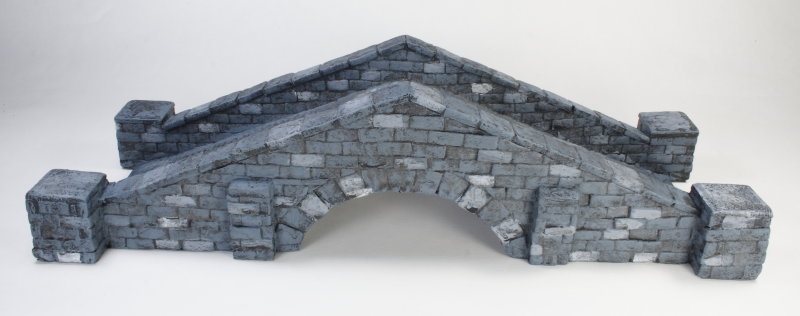 GNBRI007a - Bridge - Slate Grey A single arch bridge. Overall length 290mm, width 110mm. The road way is 60mm wide and the side parapet is 18mm high. The arch is 85mm wide and 30mm high at its centre. This shows a view from the top and this a view from the side. |